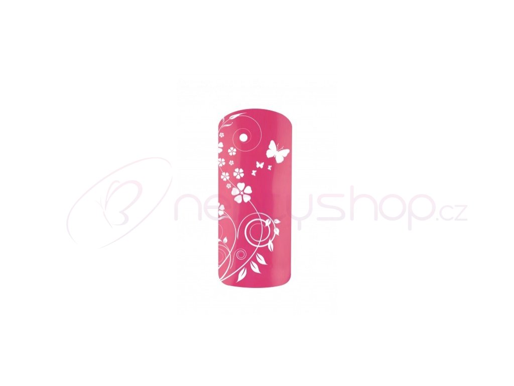 Nehty jemně přebrousíme bílým blokem, naneseme podkladovou vrstvu gel laku a necháme vytvrdit v UV lampě po dobu 2 minut, dále nanášíme vrstvu barevného gel laku a opět necháme vytvrdit 2 minuty.