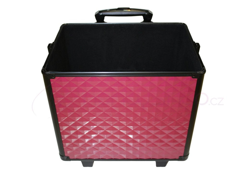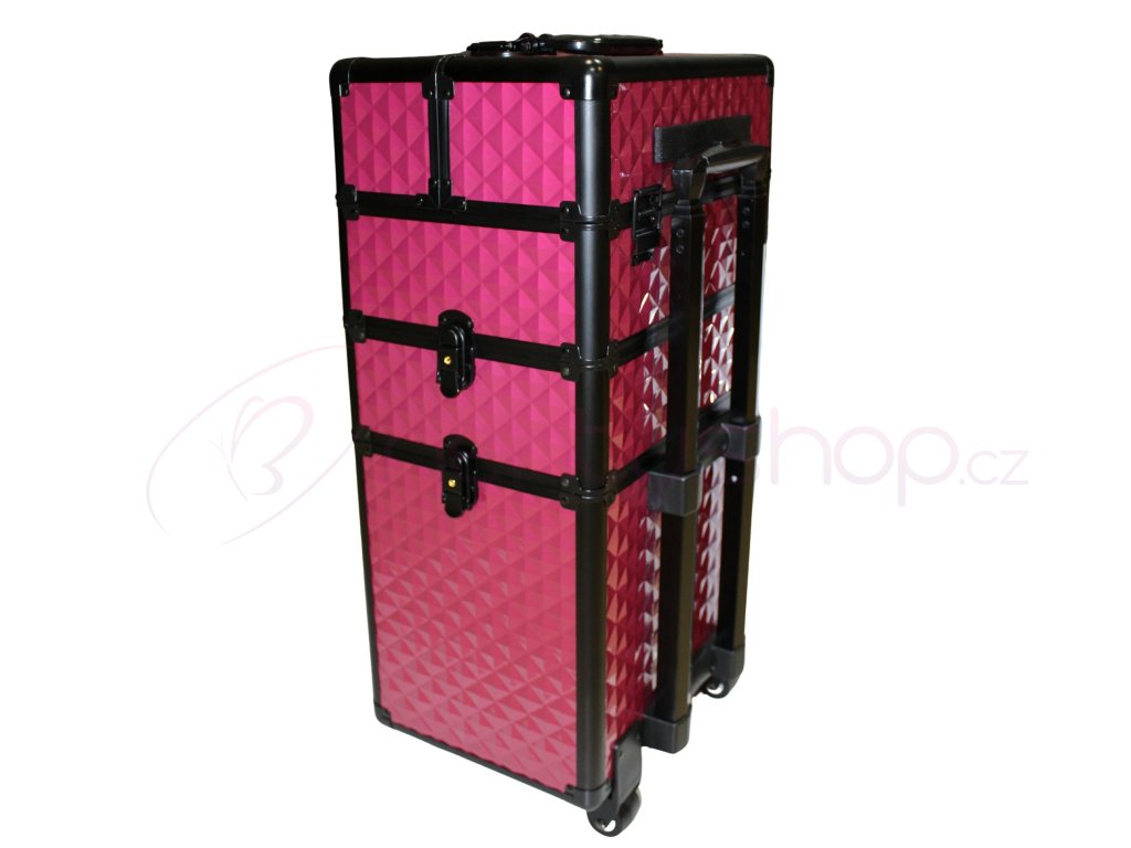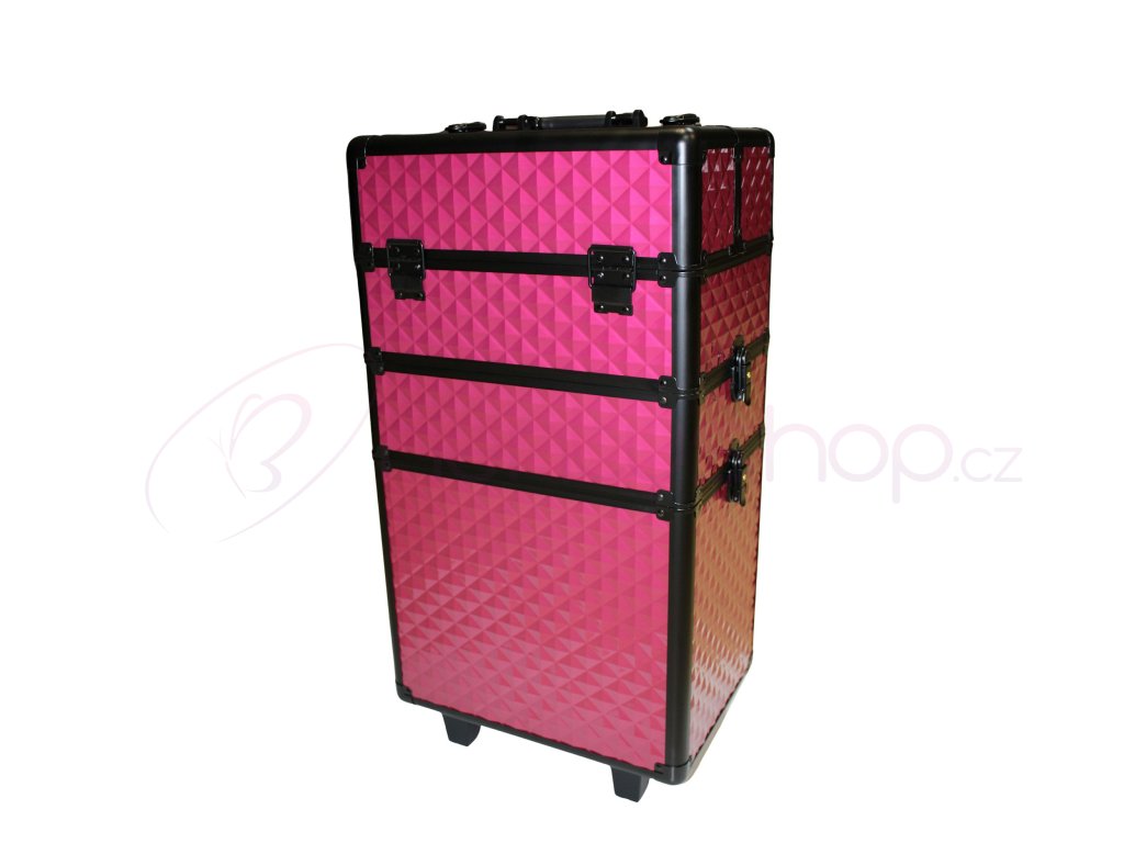 Profesionální dvoudílný kosmetický kufr na kolečkách 2v1 - hliníkový, černo-růžový