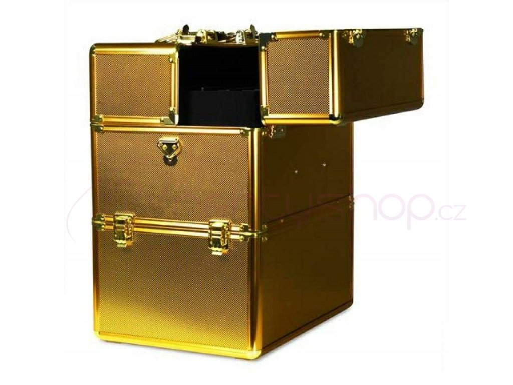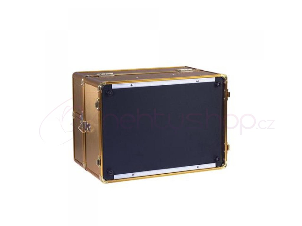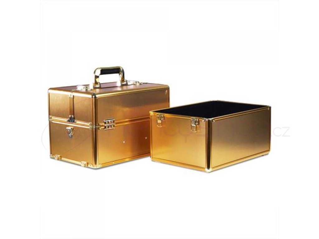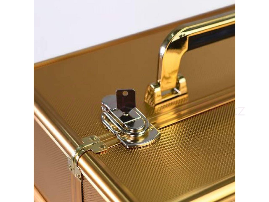 Praktický dvojitý kosmetický kufřík z lehkého pevného materiálu (hliníku), zesílené rohy proti poničení, vnitřní povrch je potažen sametovou látkou.Kufřík má dvě posuvné zásuvky a je uzamykatelný. Ve spodní části je dostatek místa pro uložení LCD lampy, brusky, mnoho gelů a jiného příslušenství. Ideální na cesty.