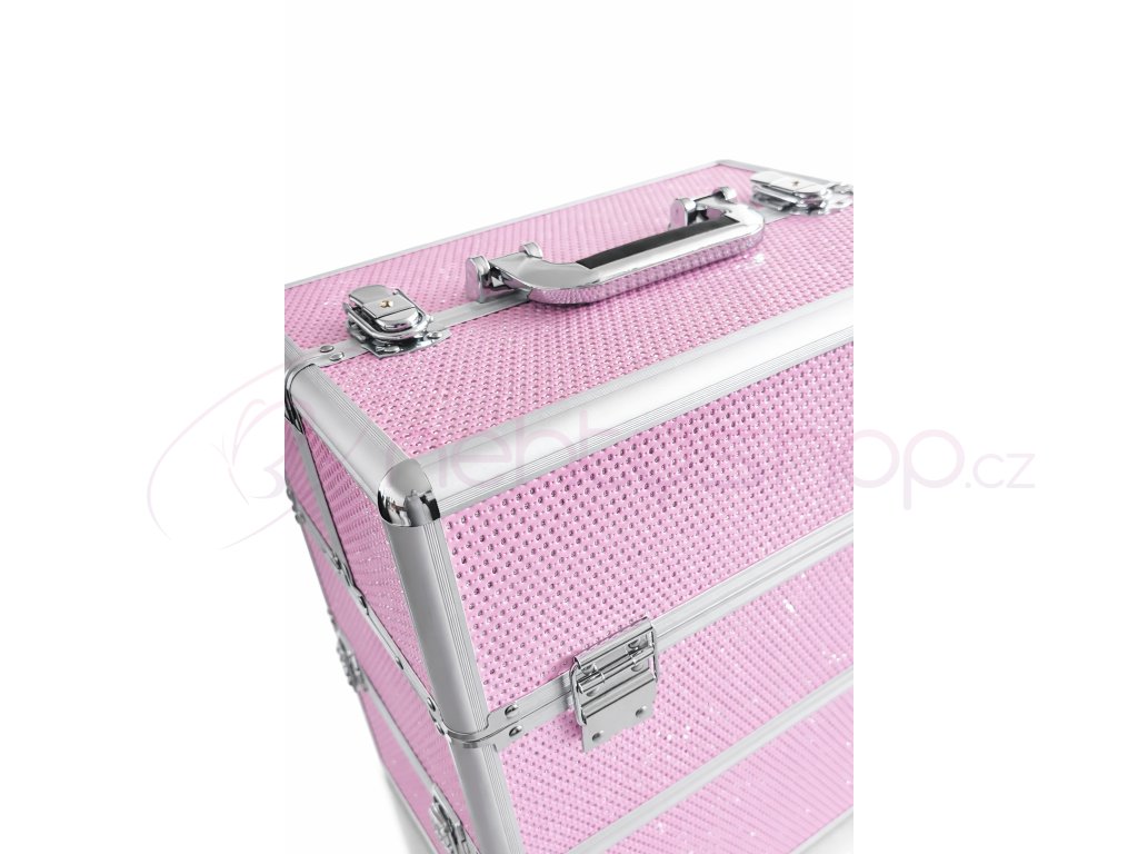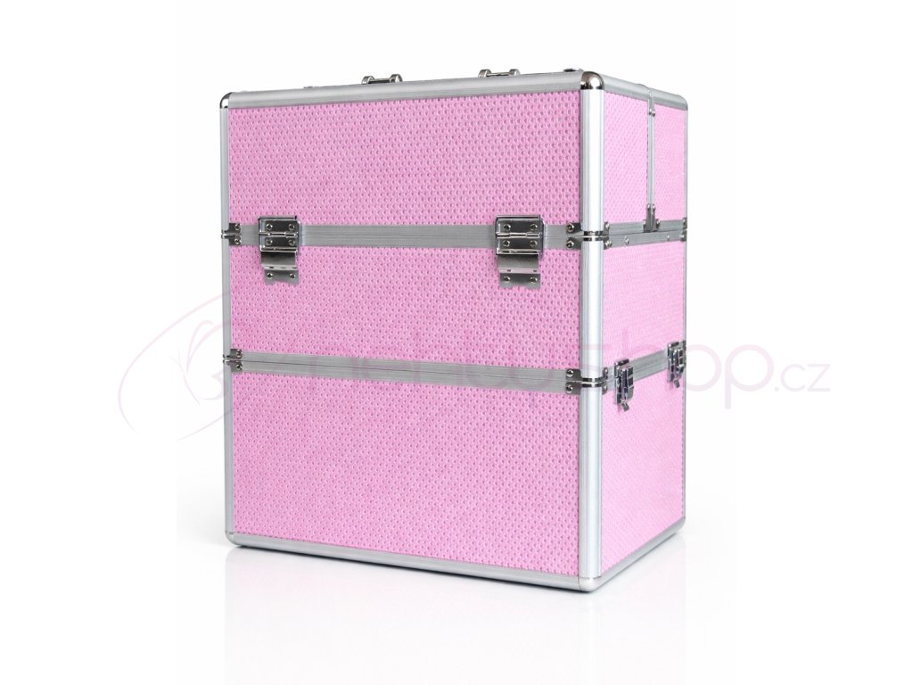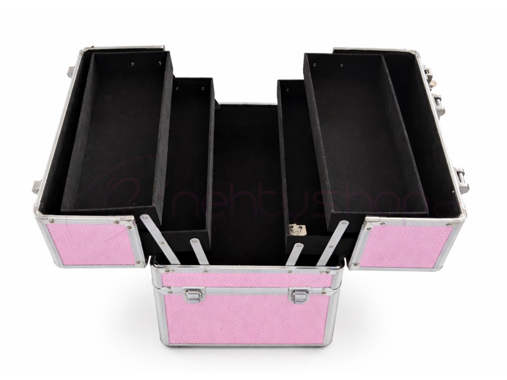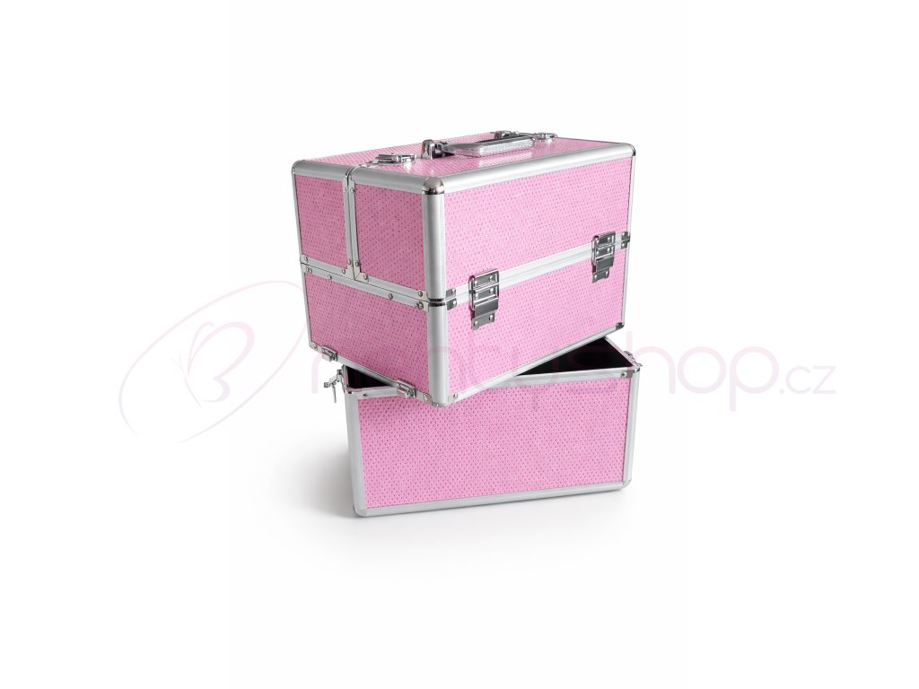 Praktický dvojitý kosmetický kufřík z lehkého pevného materiálu (hliníku), zesílené rohy proti poničení, vnitřní povrch je potažen sametovou látkou.Kufřík má dvě posuvné zásuvky a je uzamykatelný. Ve spodní části je dostatek místa pro uložení LCD lampy, brusky, mnoho gelů a jiného příslušenství. Ideální na cesty.