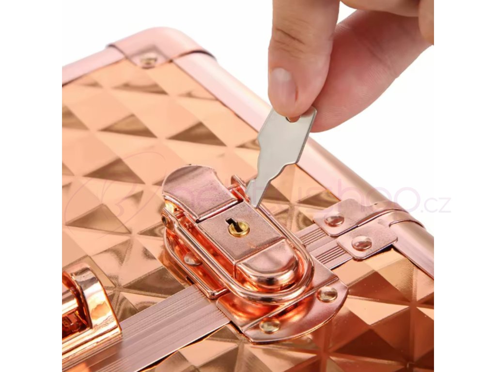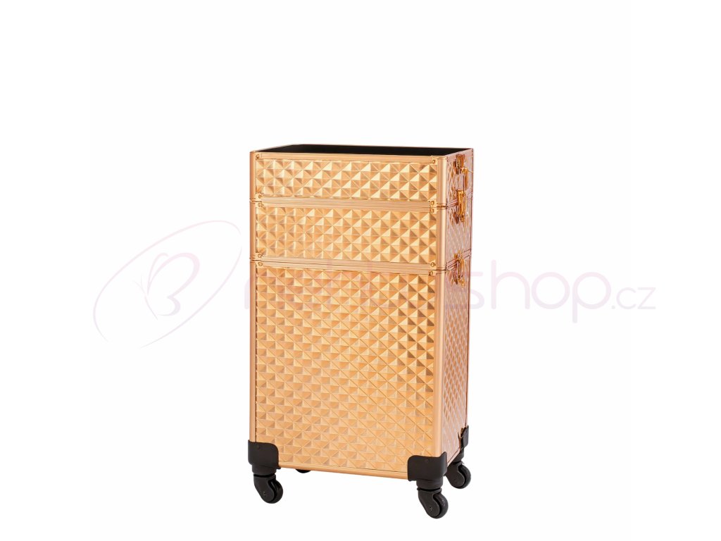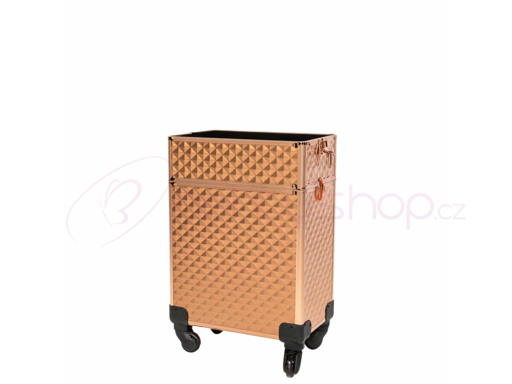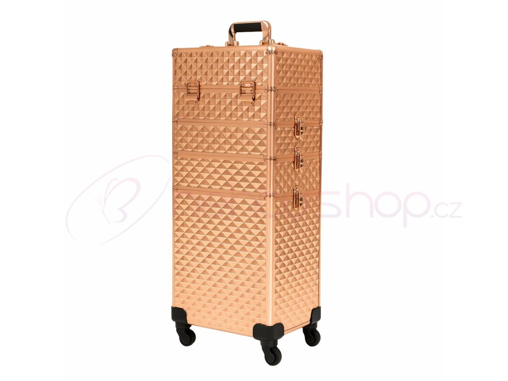 Profesionální kosmetický kufřík 4 patra - Rose-Gold, s kolečky