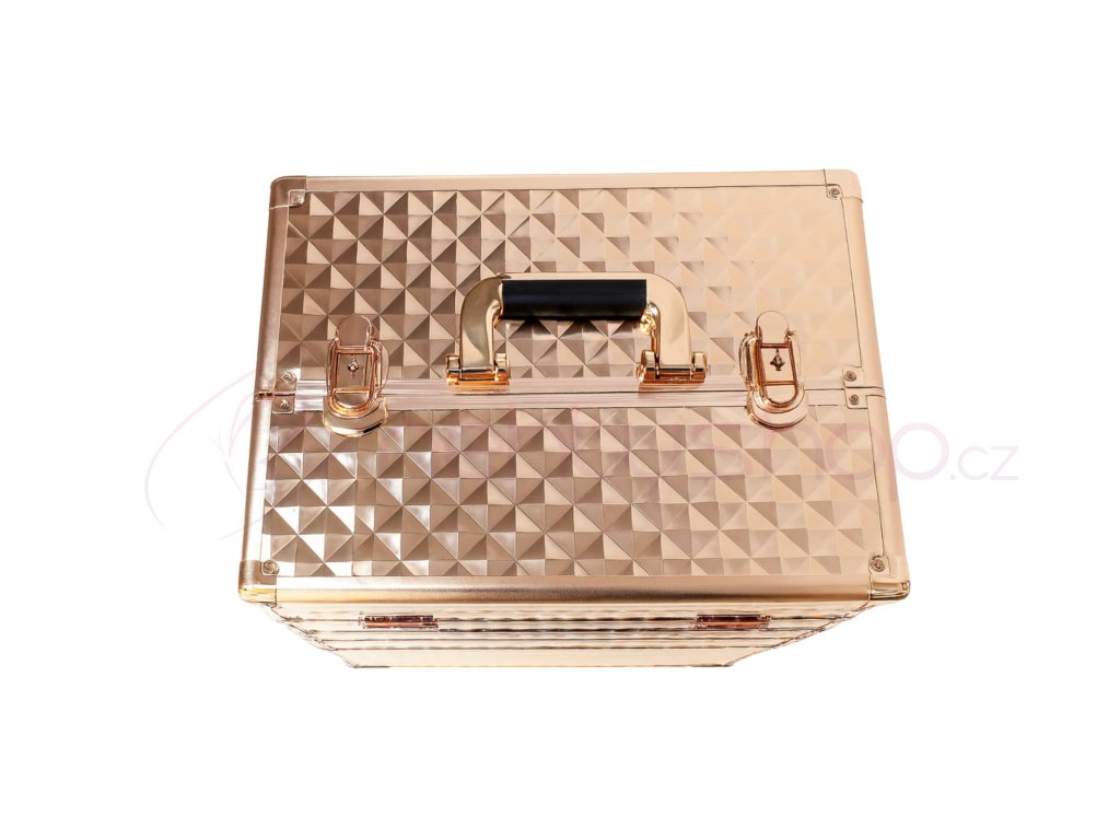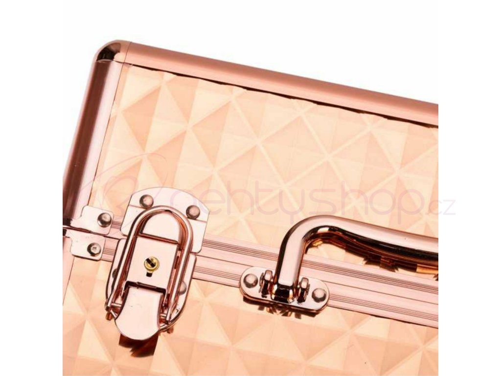 Velký kosmetický kufr na kolečkách, zlato-růžový