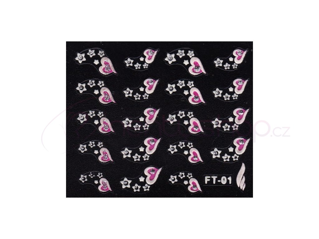 › Zdobení na nehty › Nálepky na nehty › 3D samolepky na nehty, bílo-růžové srdce