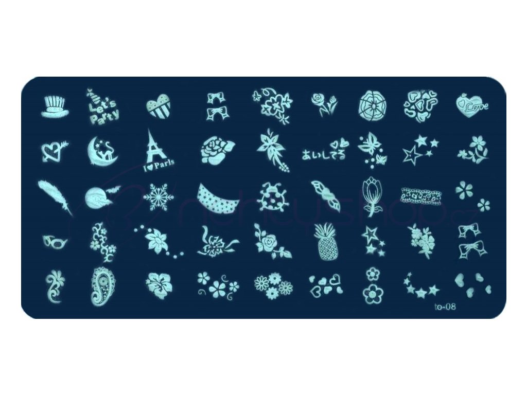 › Zdobení na nehty › Razítka na nehty › Řada MEDIUM › Destička medium TO-08X - ROZBALENO