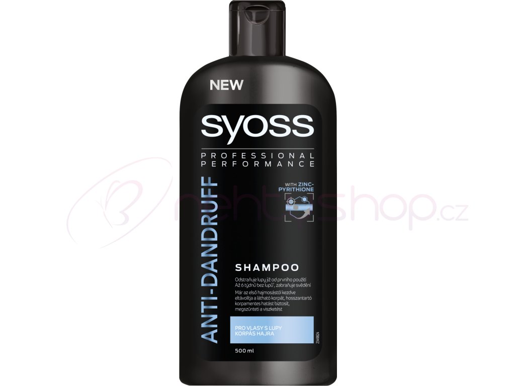 Šampon proti lupům s Pyrithionem zinku bojuje proti lupům již od prvního umytí a předchází jejich opětovnému vzniku až na dobu 6 týdnů. Účinně myje vlasy a zabraňuje svědění a napětí pokožky hlavy již od prvního umytí. Syoss je řada vlasové péče speciálně vyvinutá s kadeřníky a kadeřníky používaná. Její vysoce účinná receptura s prvotřídními složkami poskytuje perfektní výsledek při každodenním domácím použití. Profesionální kvalita-profesionální výsledky.