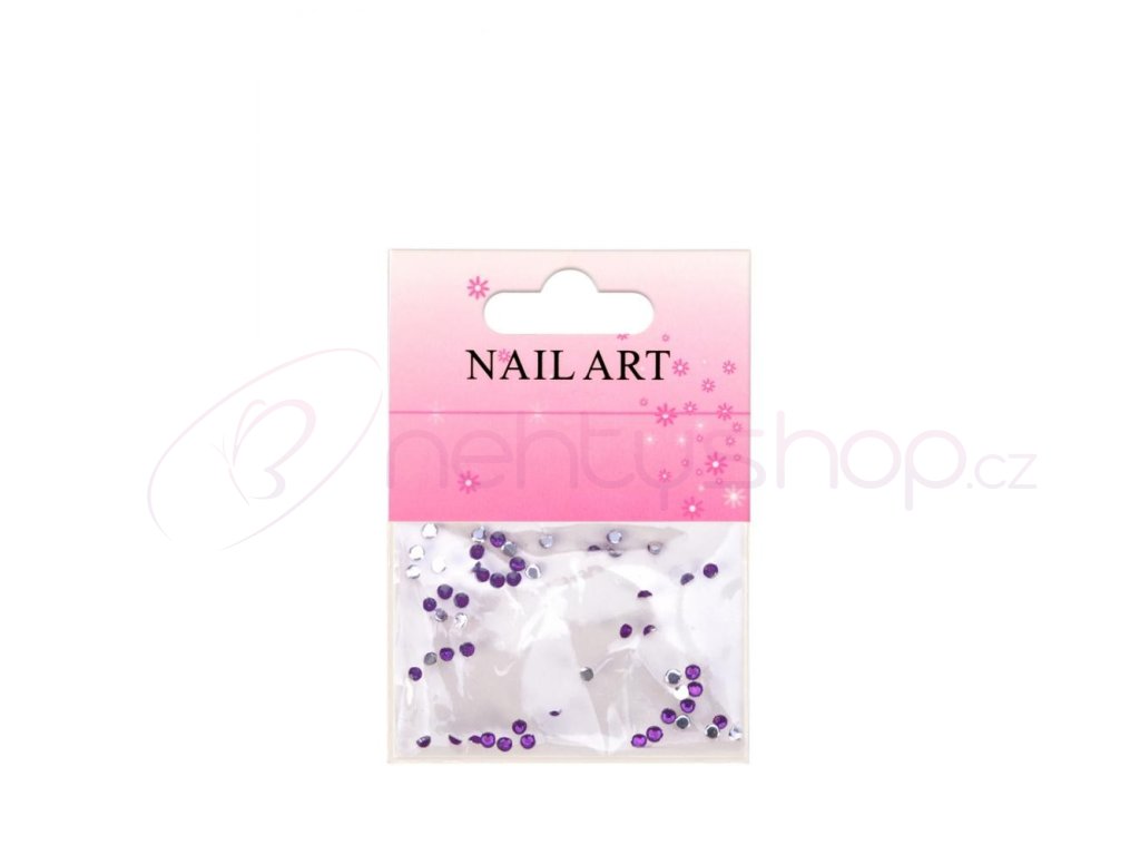 malé drobné fialové kamínky, velikost kamínku cca 1,5 mm, baleno v sáčku po 50 kusech, prvotřídní jakost, moderní zdobení na nehty, použití - gelová i akrylová modeláž