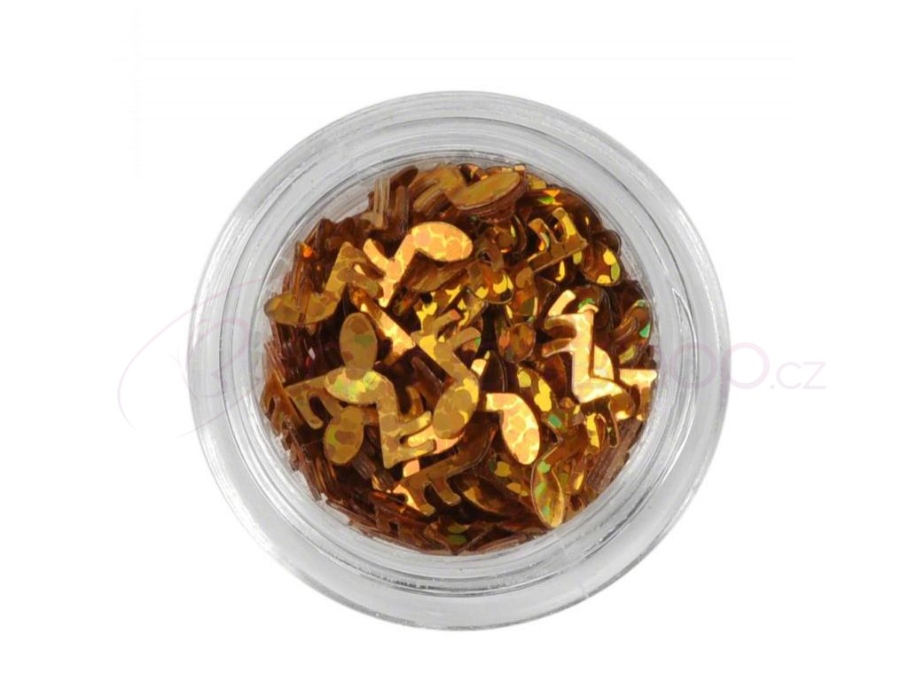 zlaté noty v sáčku - cca 100 kusů, aplikace do laku, na gelovou a akrylovou modeláž nehtů